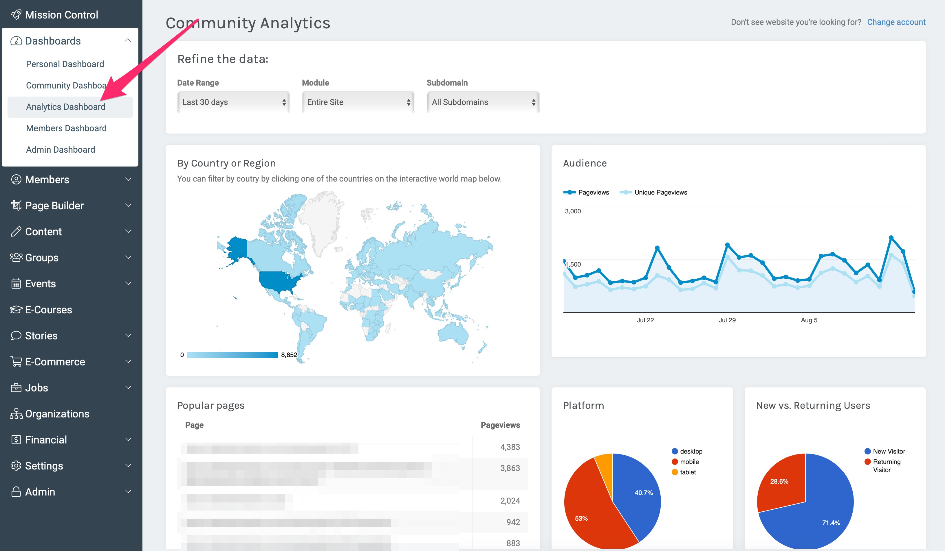 Connecting your Google Analytics is a helpful way to track traffic within your community.