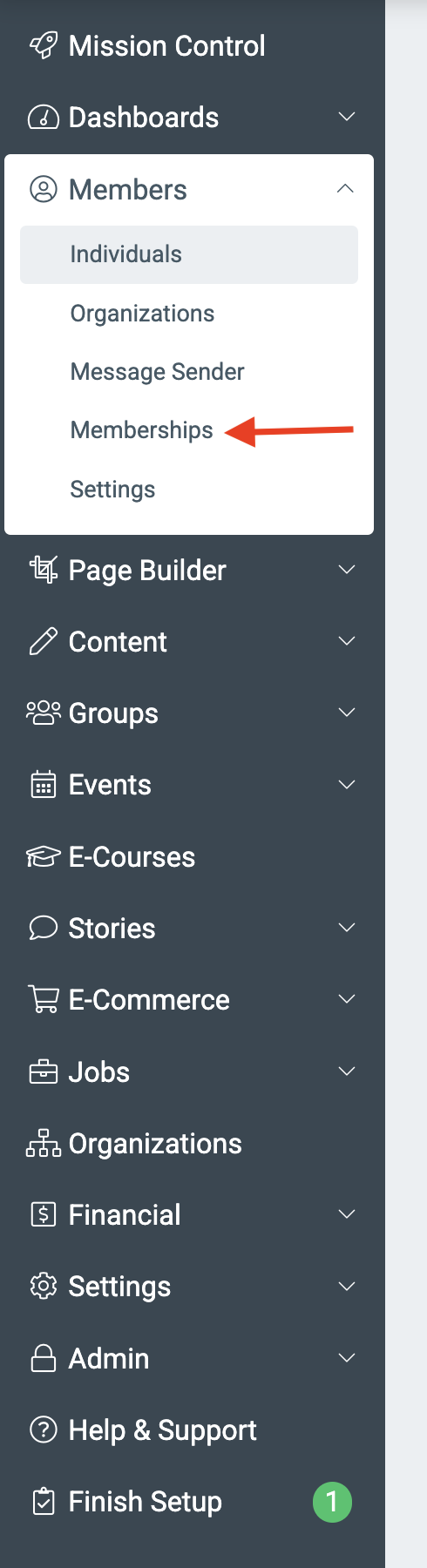 3. "Setup Membership Tiers" links to the "Memberships" page found under Members